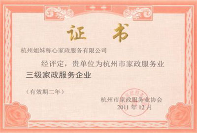 2011年榮獲三級(jí)家政服務(wù)企業(yè)